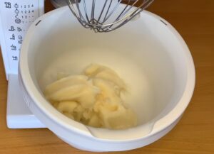 Mast staviti u veću posudu i kratko je izraditi varjačom ili mikserom da omekša.