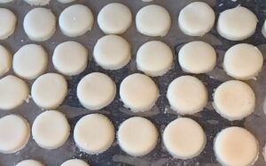 Ređati na pleh obložen papirom za pečenje, sa malim razmakom.